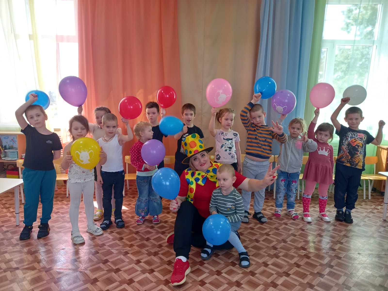 Праздник 1 апреля - это день шуток, веселья и смеха. Доброй традицией в нашем детском саду стало отмечать «День смеха». И самое главное, это подарить детям хорошее настроение, чтобы, повзрослев, они вспоминали эти счастливые минуты. В гости к воспитанникам групп пришел веселый клоун Апрелька, который в течение всего праздника рассказывал веселые стихотворения, танцевал, загадывал загадки, участвовал в конкурсах и эстафетах, показывал фокусы. Дети были в восторге! День Смеха в нашем детском саду прошёл весело и шумно.